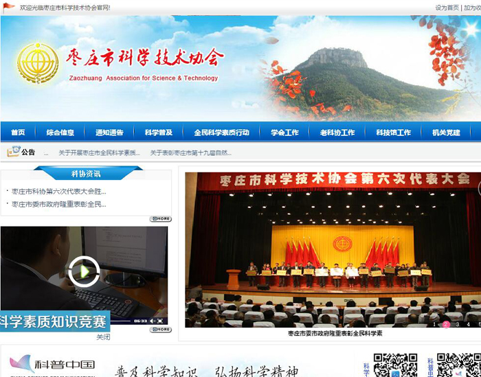 枣庄市科学技术协会(简称市科协),是全市科学技术工作者的群众组织,是市委领导下的人民团体,是市委、市政府联系科技工作者的桥梁和纽带,是推动科学技术事业发展的重要力量。机关下设办公室、组织部、学会部、科普部、反邪教协会五个部室和市科技馆、市科技咨询中心两个事业单位。机关编制总额为18人,其中行政编制16人,工勤人员编制2人。 市科协主要职责: 1、开展学术交流,繁荣学术活动,推动科技进步,培养科技人才,促进学科发展和科技创新。 2、拟定全市科协系统科普工作的具体规划,并组织实施。动员社会各方面的力量,开展科普活动和青少年科技教育活动,推广先进技术;指导科技馆(所)、科普画廊、科技培训学校等科普设施、场所的规划、建设和管理;指导科普工作队伍建设。 3、全心全意为科技工作者服务,反映科技工作者的意见和要求,维护科技工作者的合法权益。 4、引导科技工作者在管理国家和社会事务中发挥作用,组织科技工作者参与科技政策、法规的制定和政治协商、科学决策、民主监督工作,促进决策科学化、民主化。 5、表彰、宣传优秀科技工作者,举荐人才;开展科技工作者的继续教育和培训工作。 6、开展科学论证、科技咨询服务,提出政策建议,促进科技成果转化;接受委托,承担项目评估、技术和成果鉴定等任务。 7、开展民间国际科技交流与合作,发展同香港、澳门特别行政区和台湾地区科技界及海外科学技术团体、科学技术工作者的民间交往和联系。 8、负责对所属学会、科技类社会团体进行监督管理;对下级科协进行业务指导。 9、负责群众性反邪教工作,开展捍卫科学尊严和反对愚昧迷信、伪科学、反科学的活动。 10、承担市委、市政府及省科协交办的其他事项。