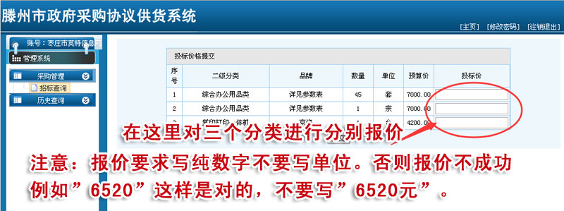 4.如果某位供应商报过价后又不想参与投标了.请再报一次价格超过预算价的.该标即作废.