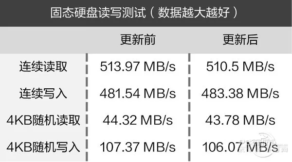 从测试可以看出,更新KB4056892前后,CPU、内存和固态硬盘的性能没有明显的变化,数据的出入可以认为在误差范围内,因此本次更新对我们手上这套硬件平台来说并没有显著的影响。